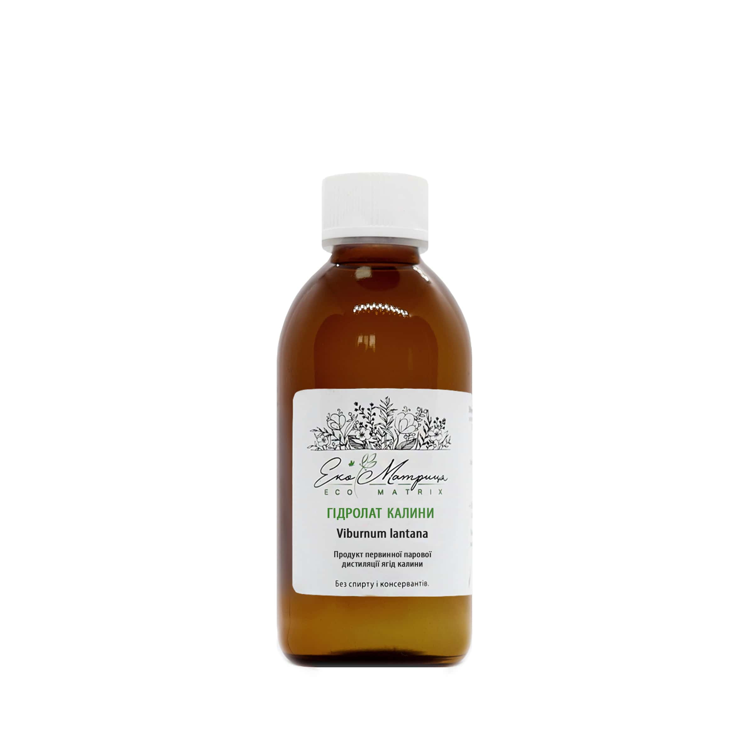 Натуральна калинова вода від Екоматриця не містить сторонніх домішок, барвників та спирту. Оскільки гідролат нерафінований, він має природний осад та може містити вкраплення які походять з калинових ягід.